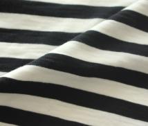Slub Stripe Jersey:Kain ini dirajut dengan konstruksi slub stripe, yang menciptakan pola bertekstur dengan ketebalan benang yang tidak beraturan, sehingga memberikan tampilan yang alami dan sedikit kasar pada kain. Pola garis-garis tersebut menambah daya tarik visual dan tekstur pada kain sekaligus mempertahankan kehalusan dan kenyamanannya. Rajutan jersey memberikan fleksibilitas dan kelenturan, sehingga ideal untuk pakaian yang nyaman dan bergaya.