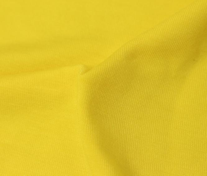 Rajutan Jersey Tunggal:Kain ini dibuat dengan menggunakan konstruksi rajutan jersey tunggal, yang menghasilkan permukaan yang halus dan lembut. Rajutan jersey memungkinkan kain menjadi lentur dan fleksibel, sehingga ideal untuk pakaian yang perlu bergerak mengikuti tubuh, seperti t-shirt, legging, dan gaun.